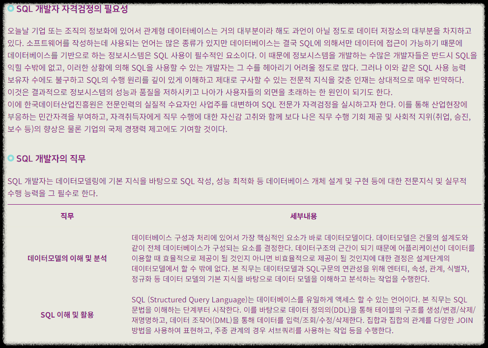 SQLD(SQL 개발자) 자격증은 한국데이터산업진흥원에서 주관하는 국가공인 민간자격증입니다.
