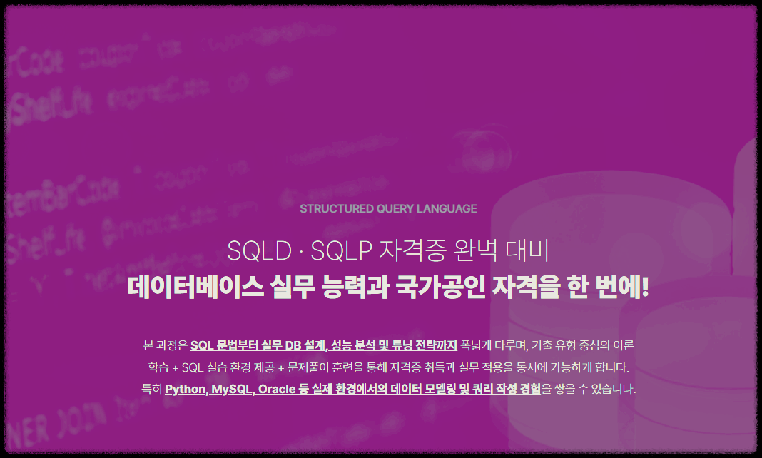 체계적으로 SQLD를 준비하고 싶으시다면,
